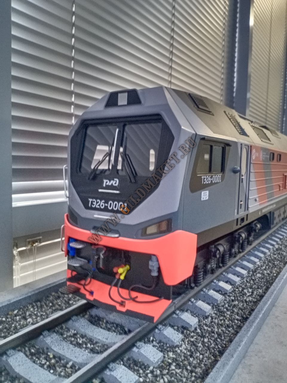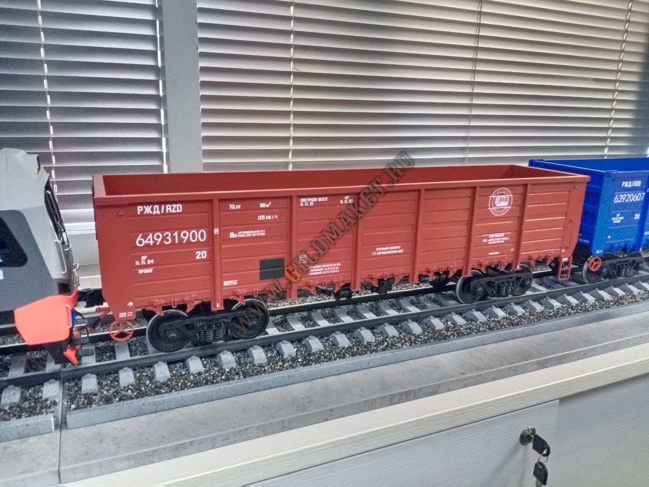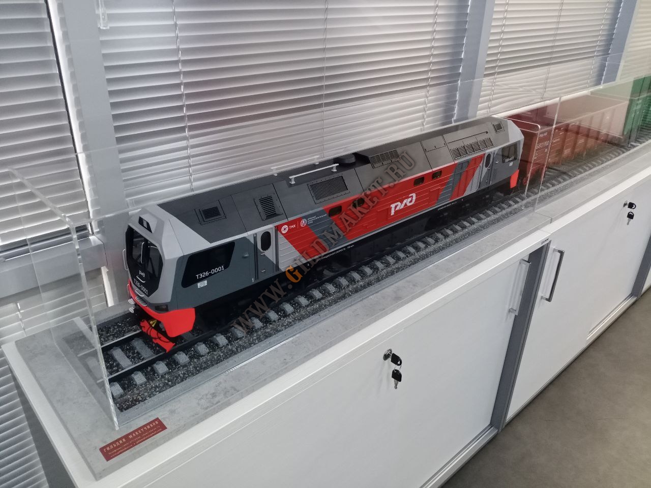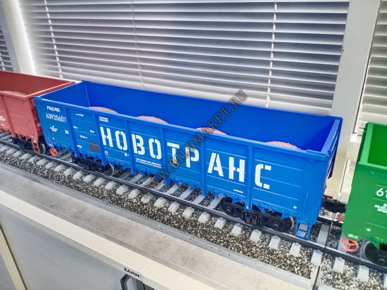 Особенности: Полная имитация железнодорожного полотна с щебёночным балластом, высокая степень детализации экстерьера, нанесение фирменной символики заказчиков методом тампопечати и аппликации.