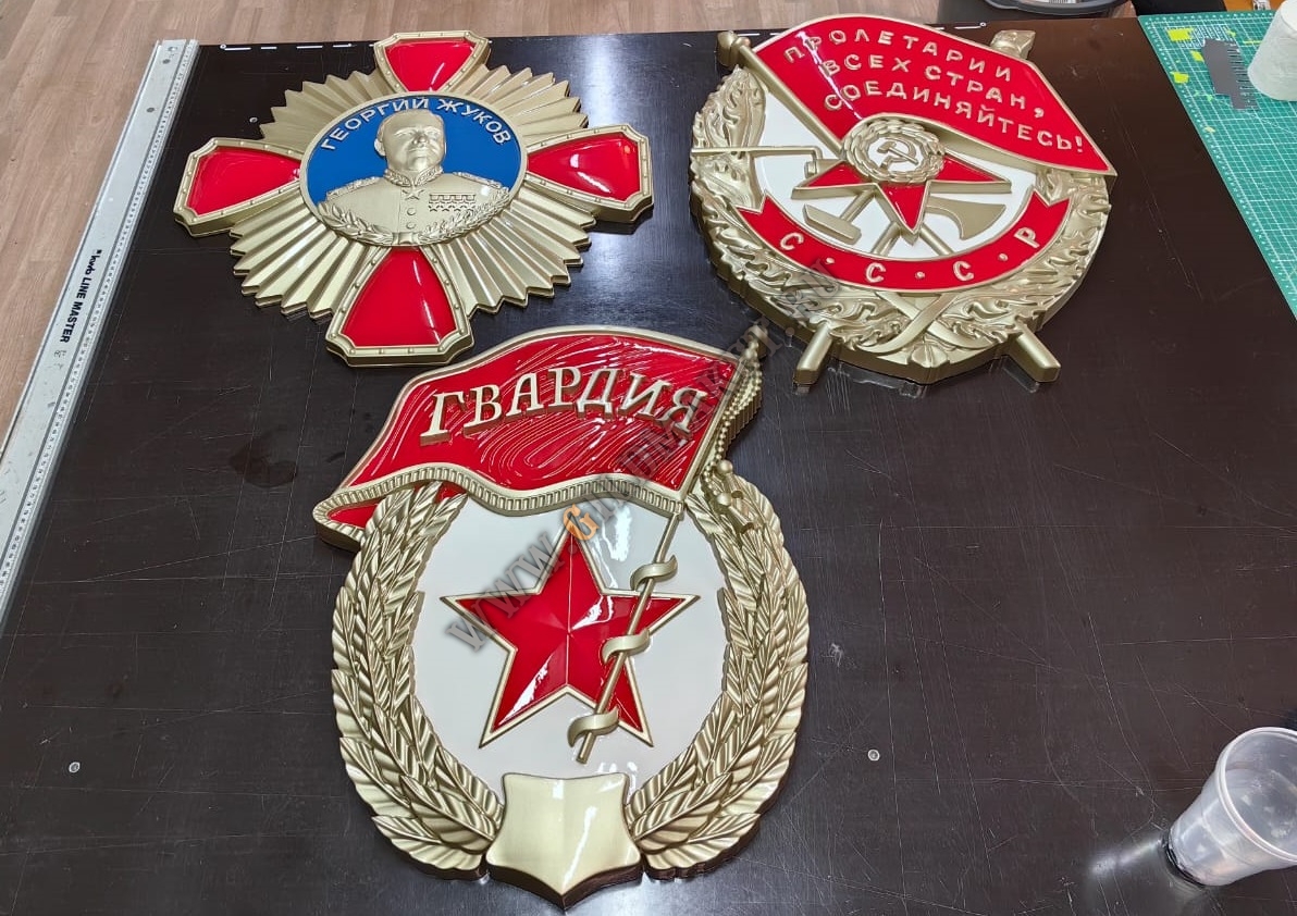 admin2024-12-15T22:21:50+03:00Объёмные макеты:- орден Красного Знамени;- орден Жукова;- нагрудный знак Гвардия.Материал изготовления: прочный макетный полимер.Высота макетов: 600 мм
